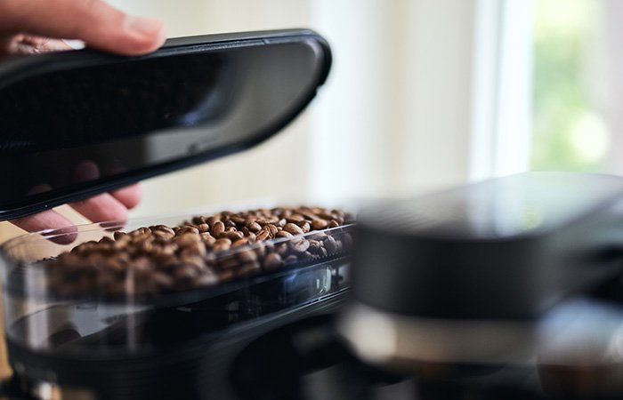 It all begins with the coffee beans – the integrated grinder