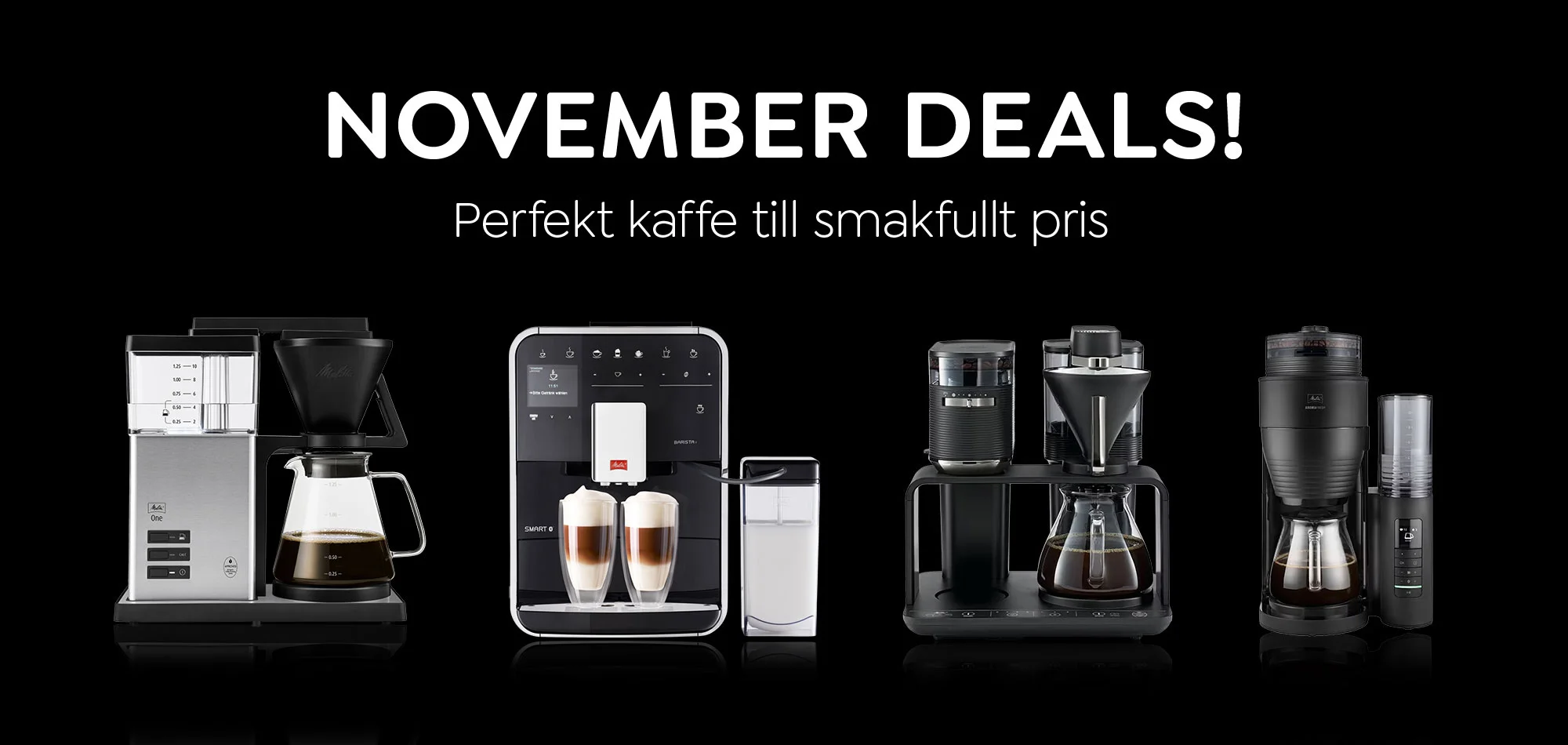 Hela månaden erbjuder vi fantastiska priser på kaffebryggare, espressomaskiner och allt du behöver för den perfekta kaffestunden hemma. Oavsett om du vill njuta av en krämig cappuccino, ett starkt espresso-shot eller en len bryggkaffe – här hittar du det bästa inom kaffevärlden, till priser som får dig att le. Missa inte chansen att höja din kaffestund!
